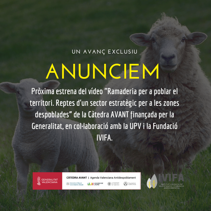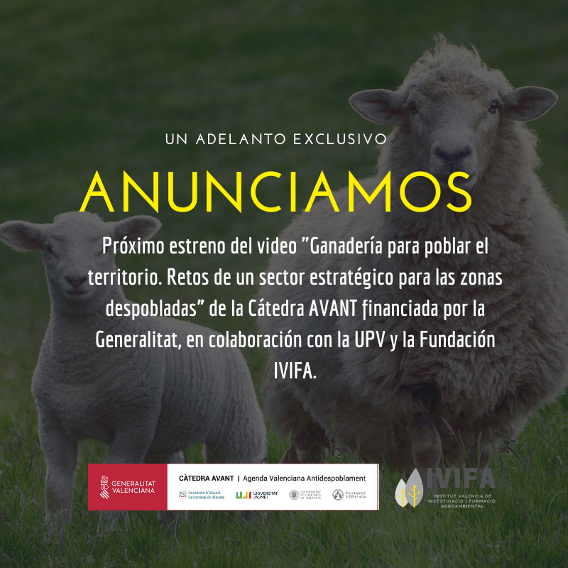Anunciamos próximo estreno del video «Ganadería para poblar el territorio. Retos de un sector estratégico para las zonas despobladas” de la Cátedra AVANT financiada por la Generalitat, en colaboración con la UPV y la Fundación IVIFA.