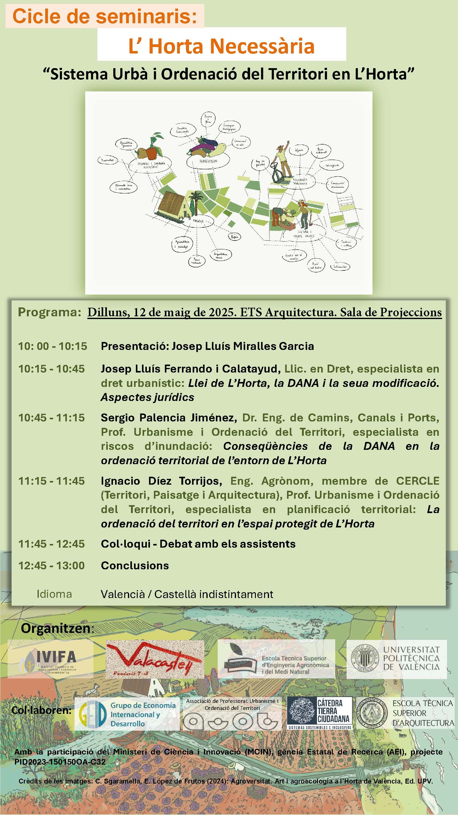 Este segundo seminario se denomina “Sistema Urbà i Ordenació del Territori a L’Horta”, y comenzará el 12 de mayo a las 10:00 horas en la sala de proyecciones de la ETS de Arquitectura de la UPV.